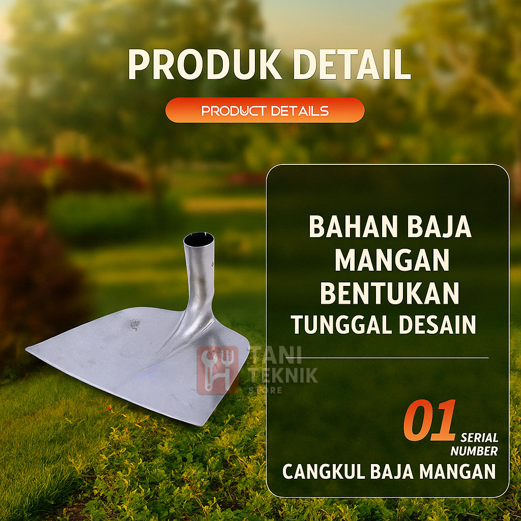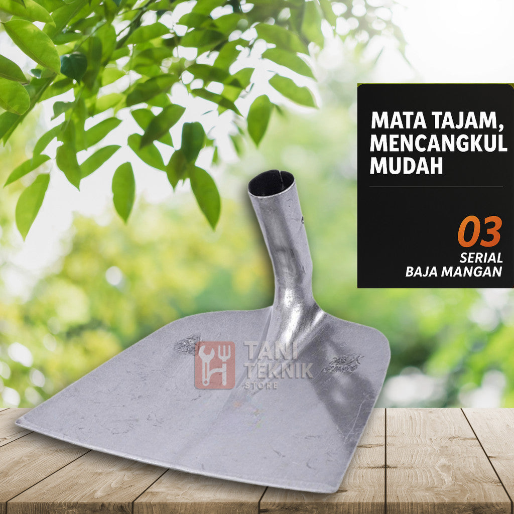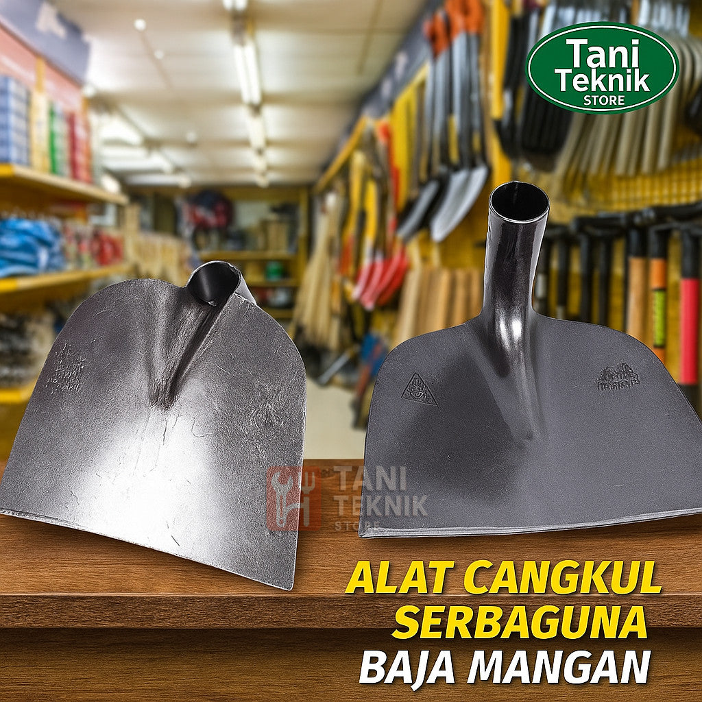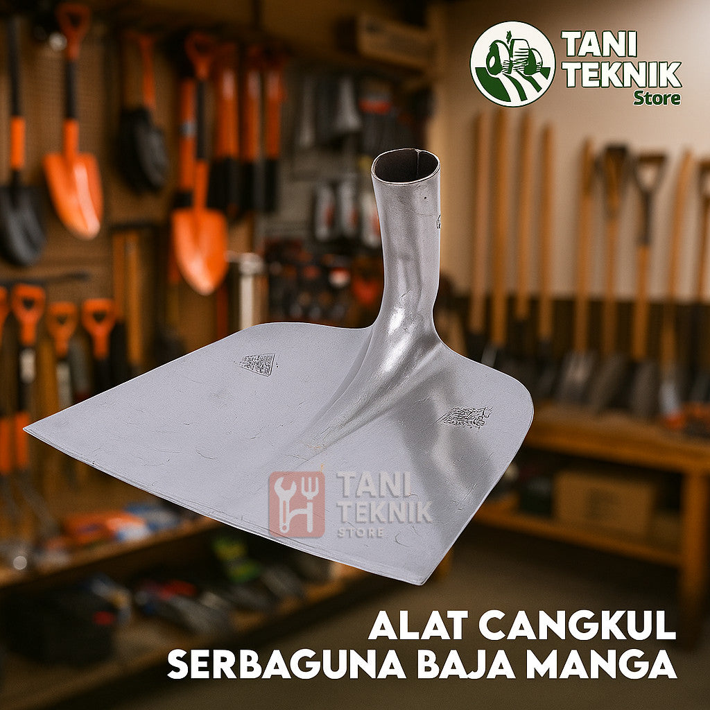 Cangkul serbaguna dengan material baja mangan untuk pekerjaan sawah, ladang, dan konstruksi ringan.