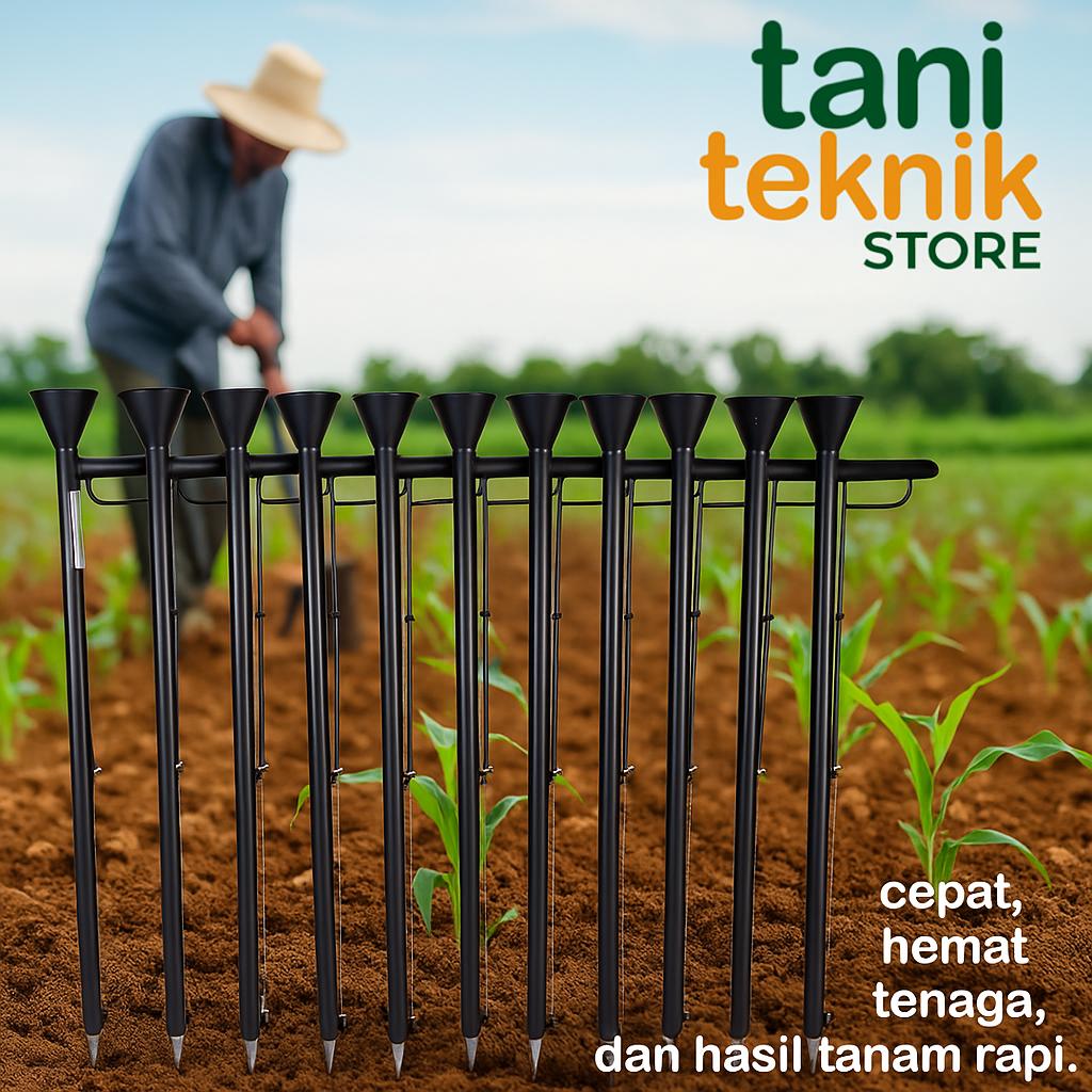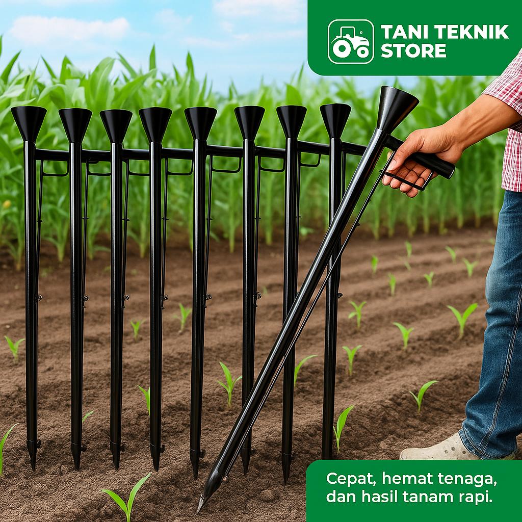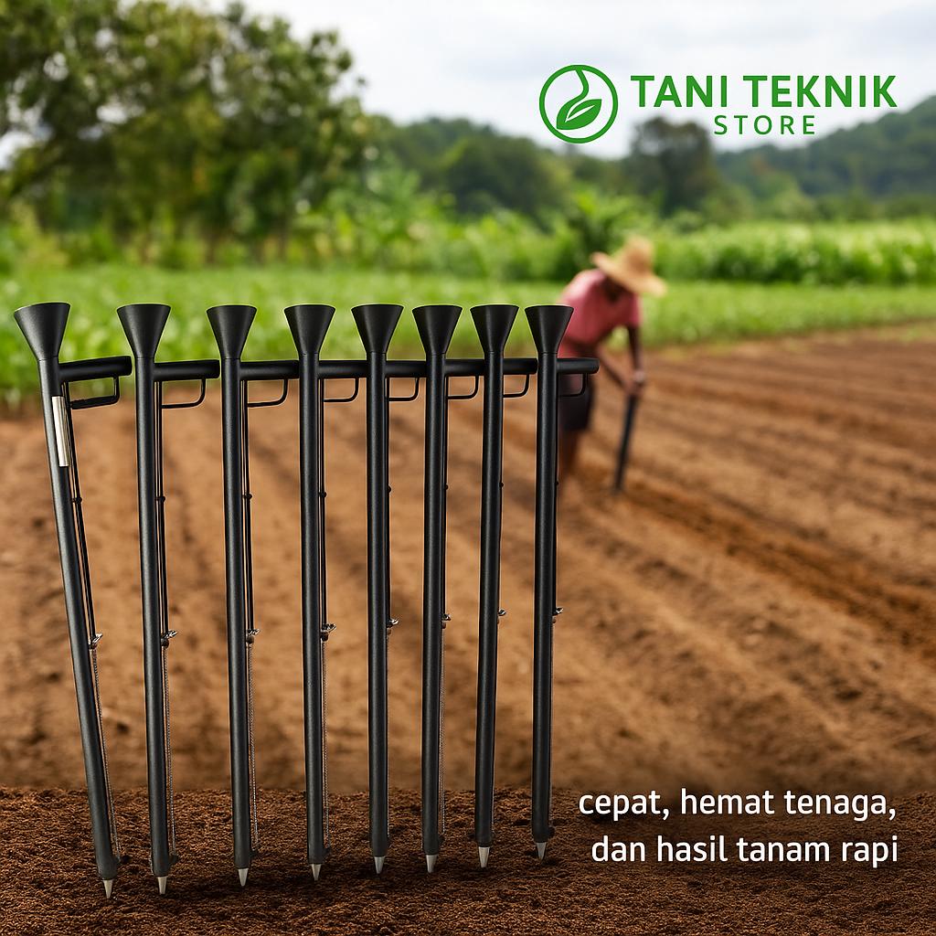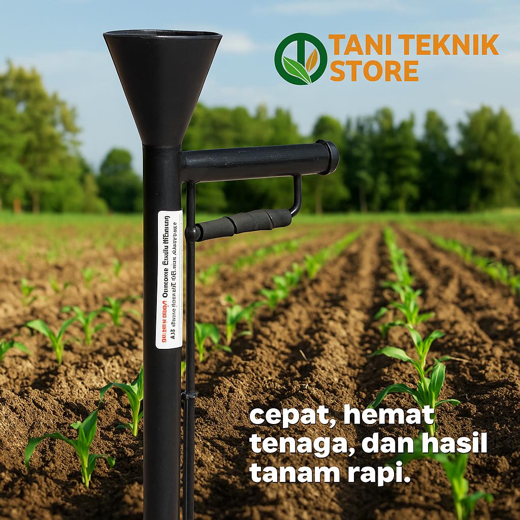 Alat penanam benih manual dengan sistem 2 pegangan untuk menanam jagung, kacang, padi, kedelai, dan sayuran dengan lebih efisien.