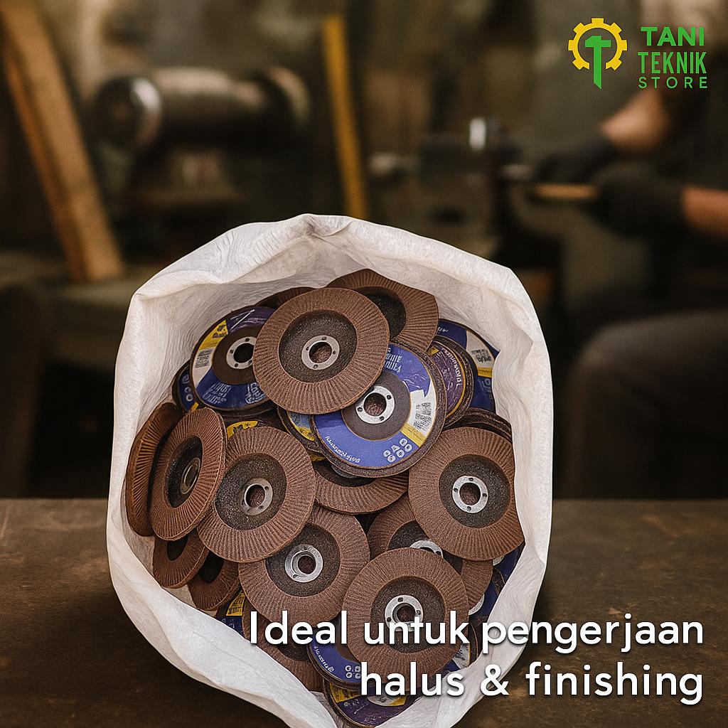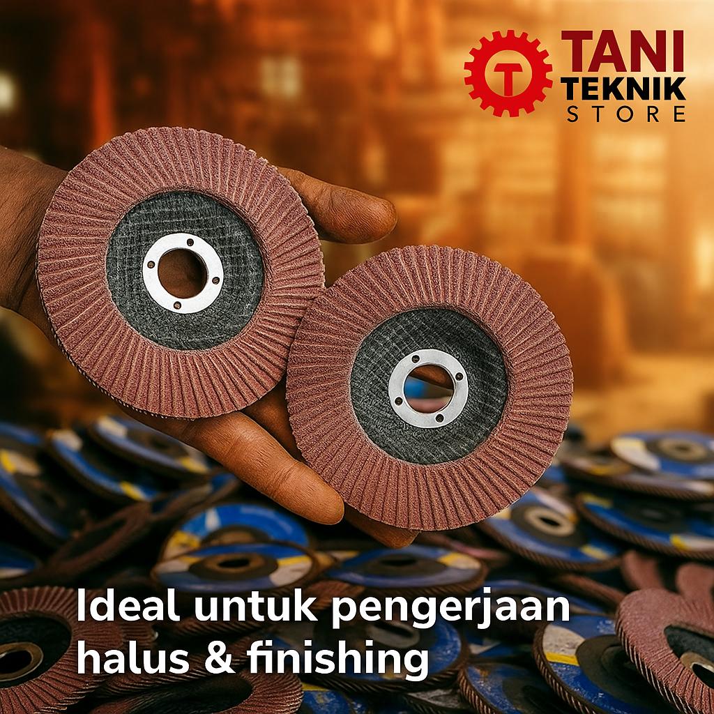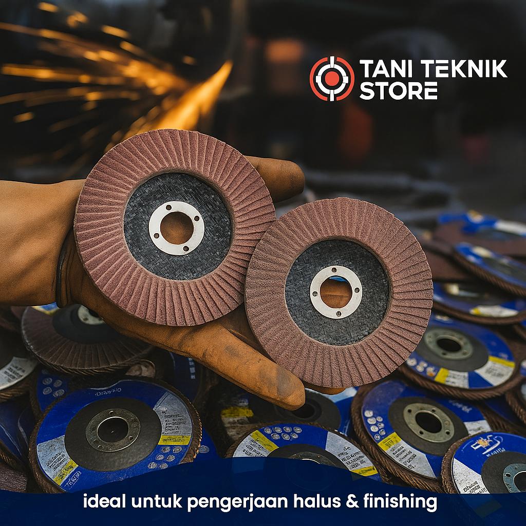 Mata amplas flap disc ukuran 4 inci dengan tingkat kekasaran grit #80 untuk pengamplasan dan finishing logam.