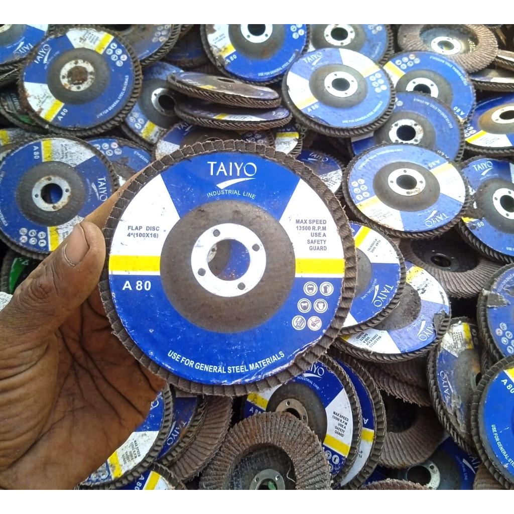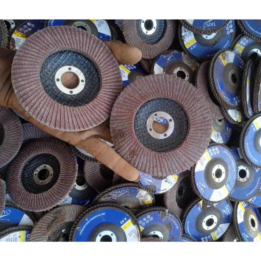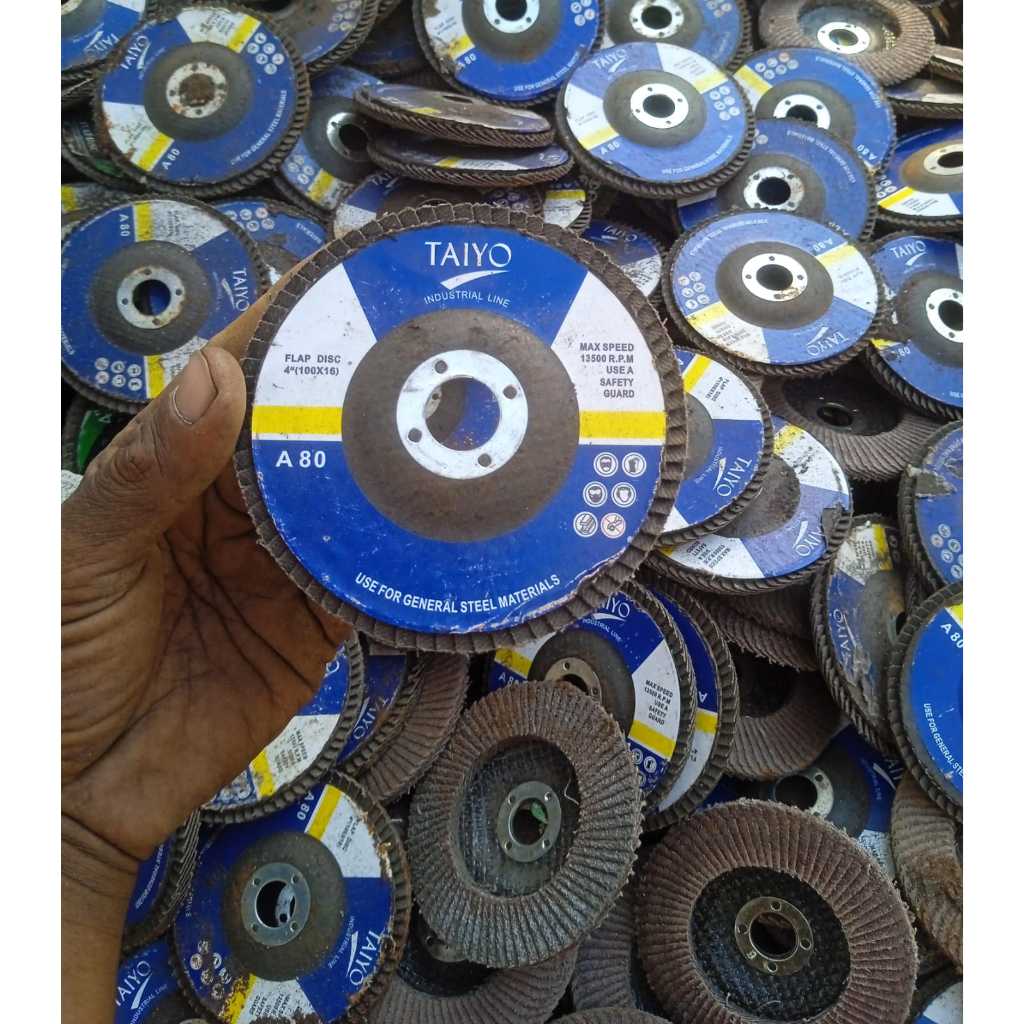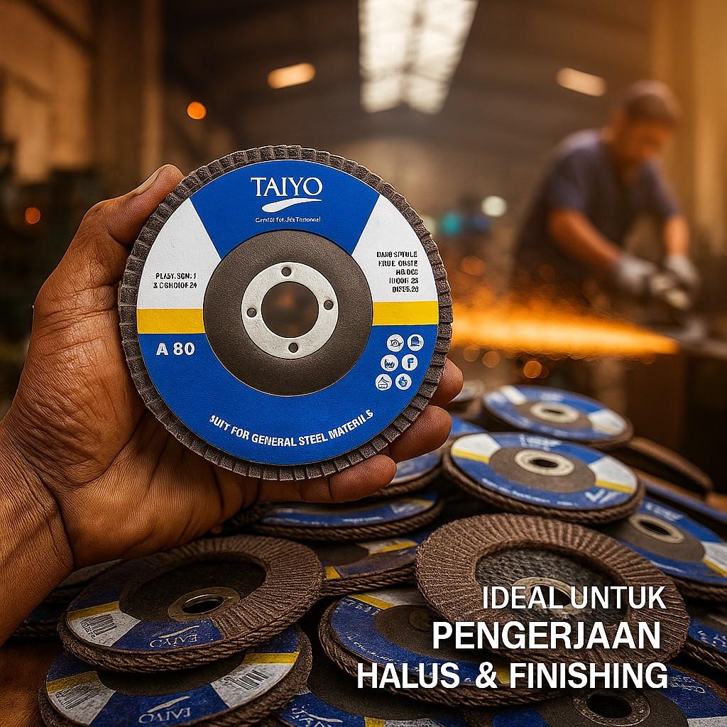 Mata amplas flap disc ukuran 4 inci dengan tingkat kekasaran grit #80 untuk pengamplasan dan finishing logam.