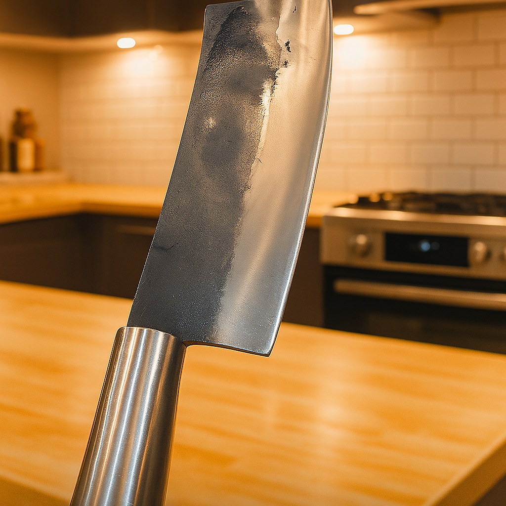 Terbuat dari baja mangan padat berkualitas tinggi, pisau ini tajam, tahan lama, serta aman digunakan untuk kebutuhan dapur, pertanian, atau produksi skala kecil (UMKM).