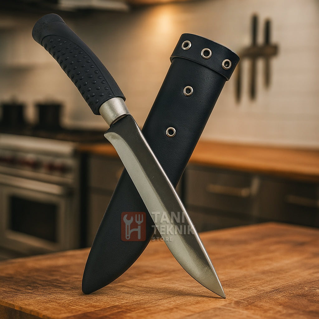 Pisau Seset Daging Baja Super Tajam – Pisau Dapur Sembelih Ayam Kambing Dengan Sarung Kalep