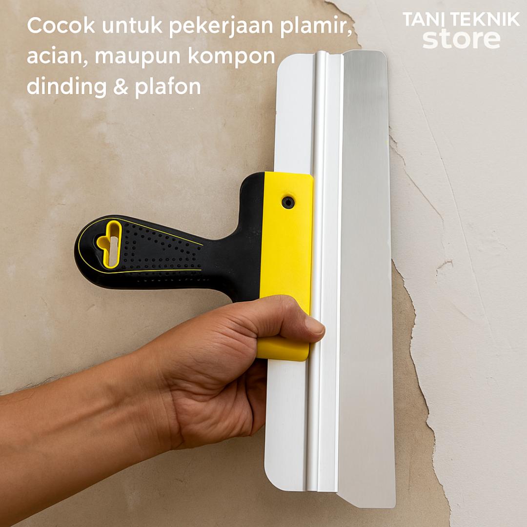 Digunakan untuk meratakan material plamir, kompon, atau acian pada permukaan dinding dan plafon. Cocok untuk pekerjaan finishing konstruksi dan renovasi.